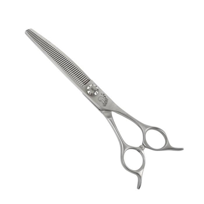 Deze gebogen blenderschaar met 46 tanden is ontworpen voor natuurlijk blenden op afgeronde lichaamsdelen. Ontwikkeld door Kitty Dekeersgieter en gemaakt voor langdurige precisie en comfort.